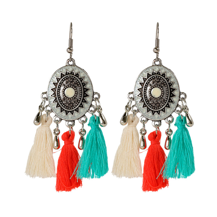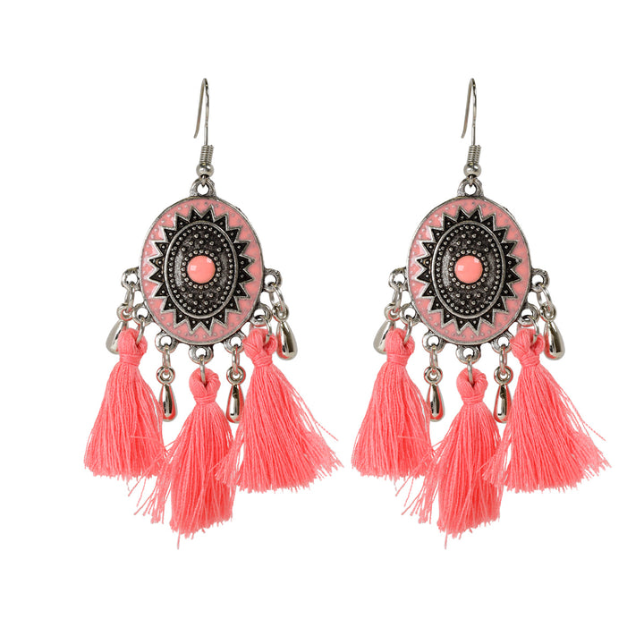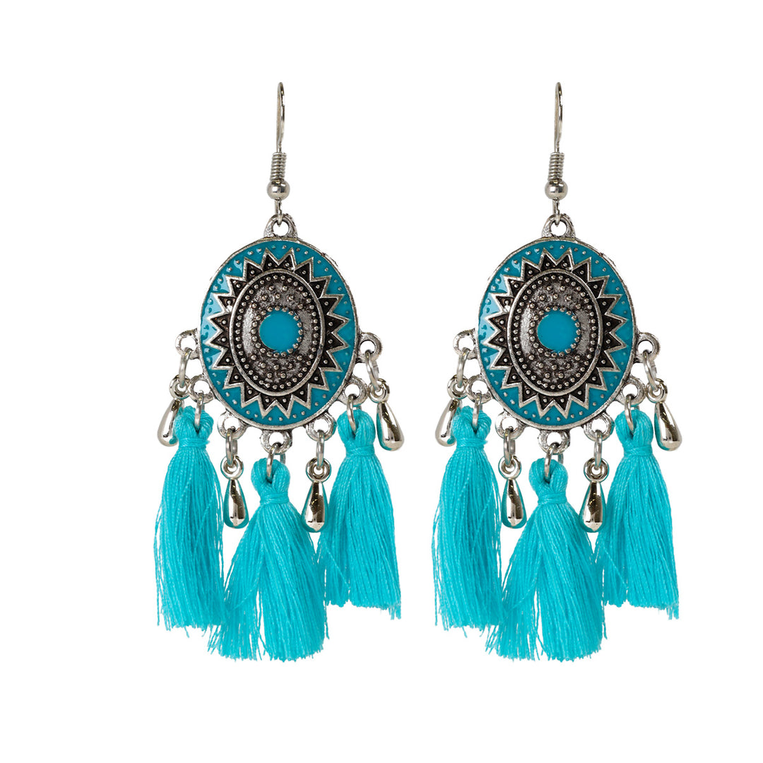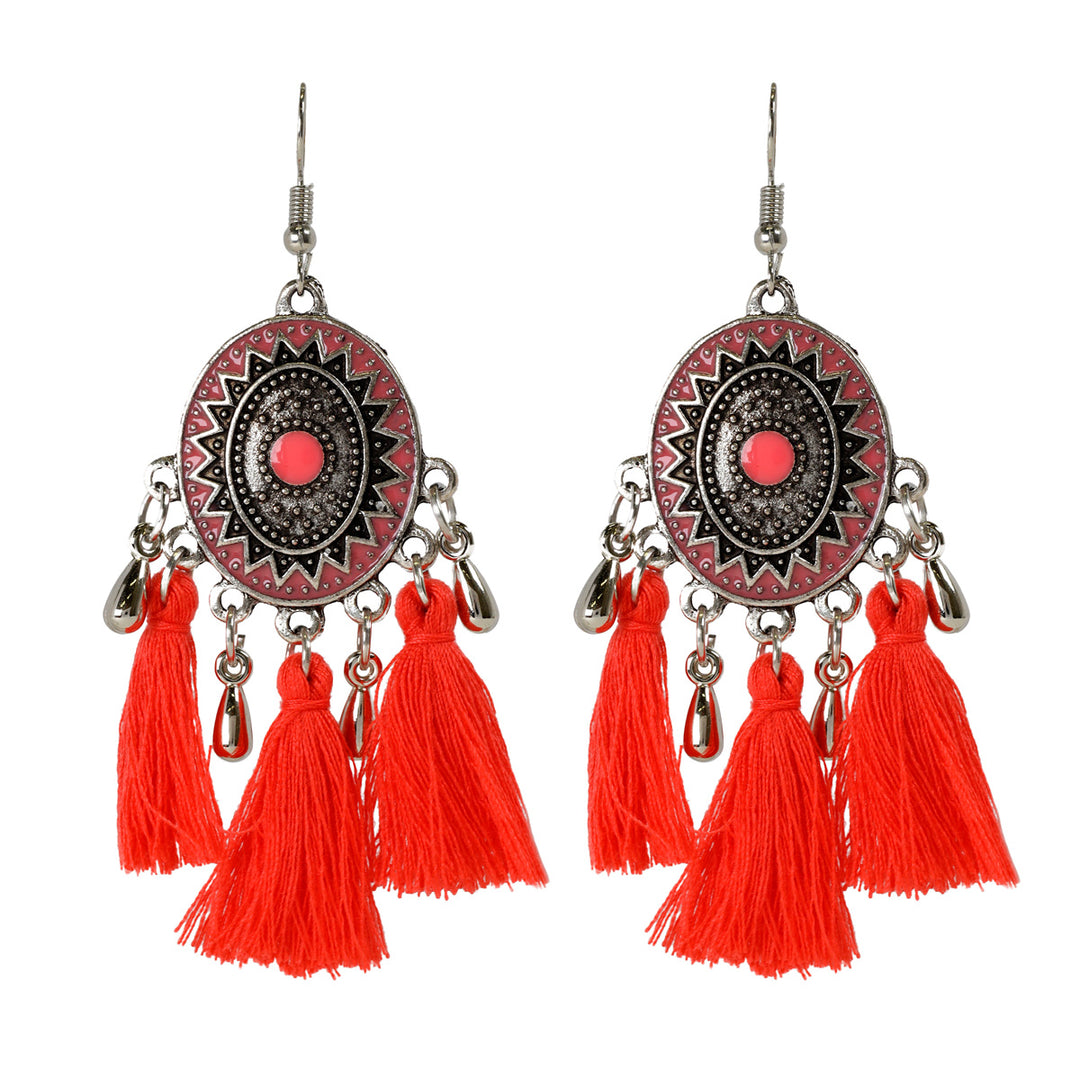 Näyttävät värikkäät korvakorut viimeistelevät asusi. Tässä mallissa tupsut ja sydämet roikkuvat värillisessä korussa.