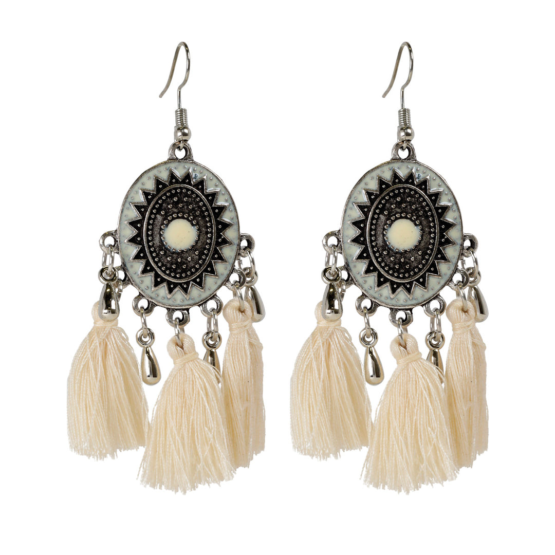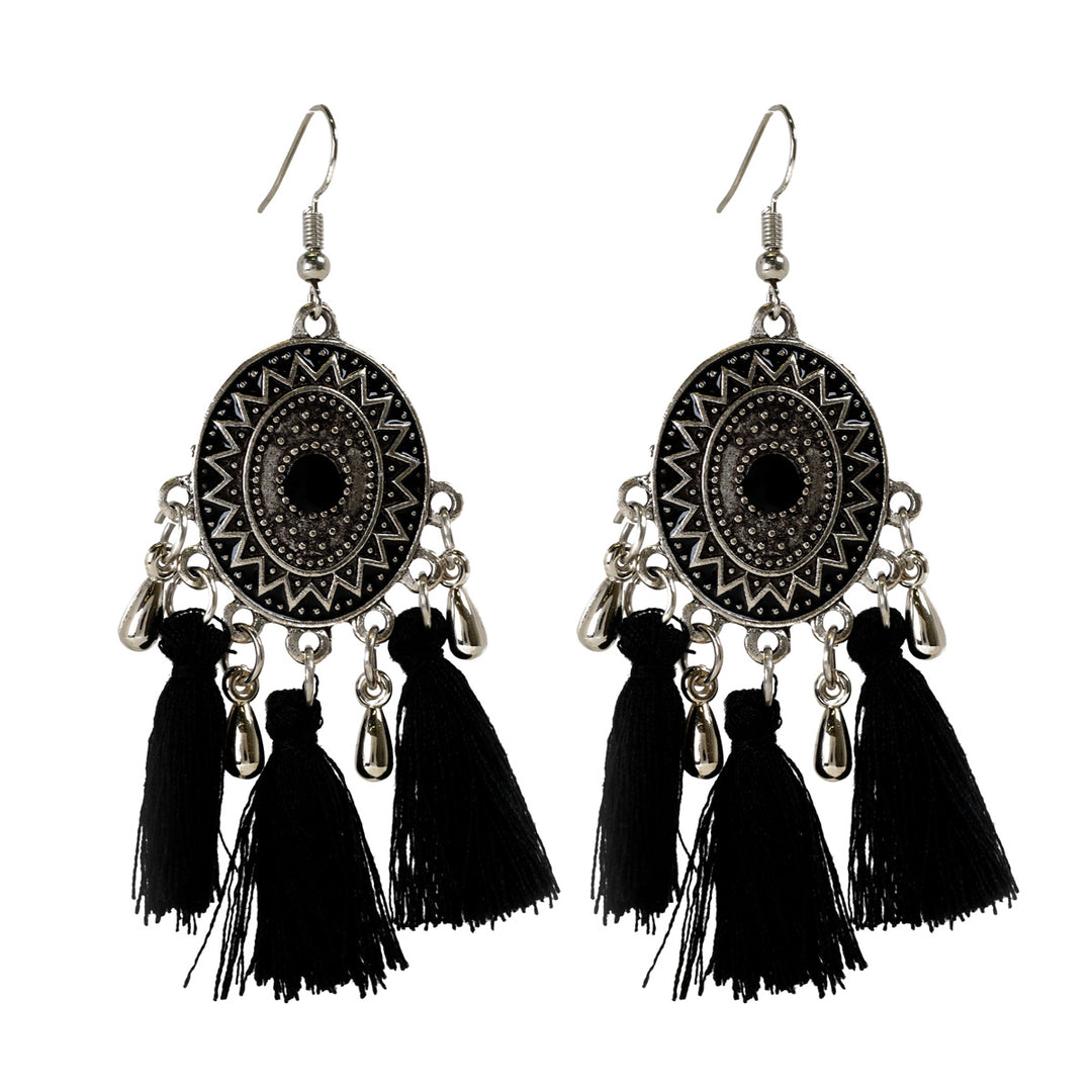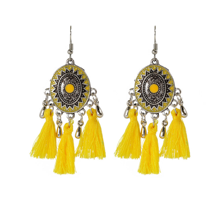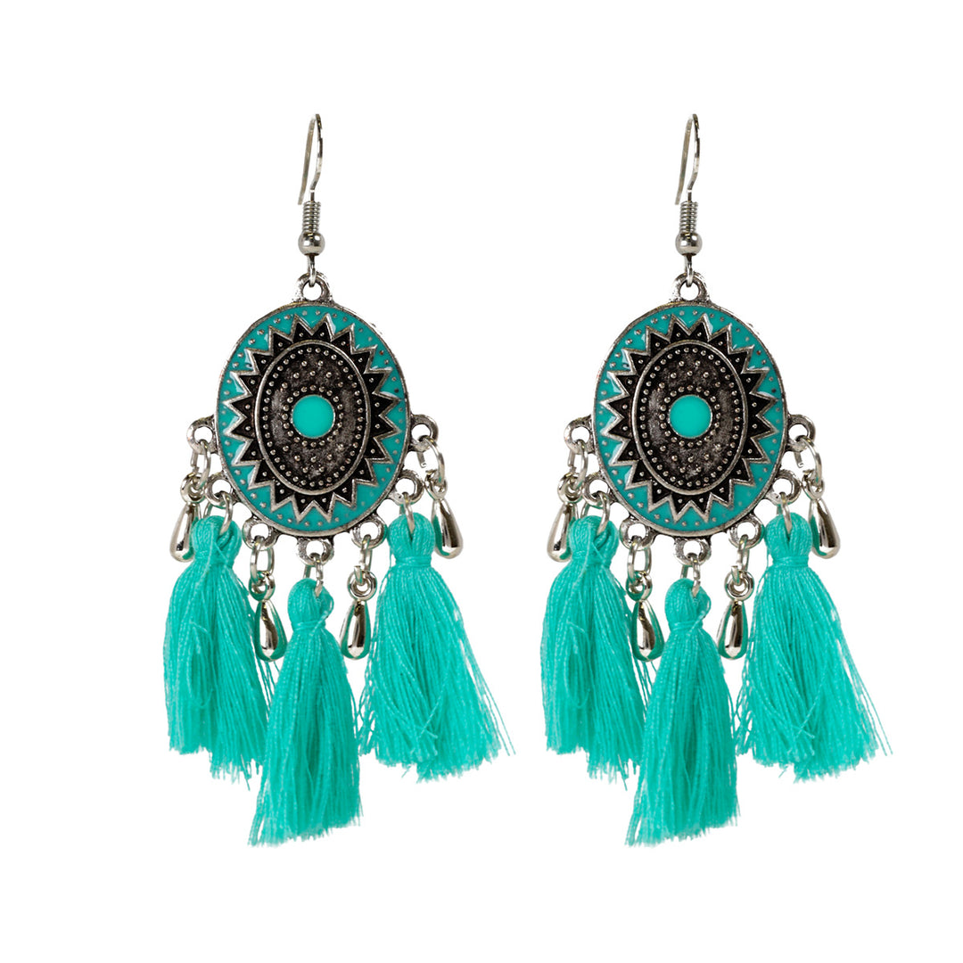 Näyttävät värikkäät korvakorut viimeistelevät asusi. Tässä mallissa tupsut ja sydämet roikkuvat värillisessä korussa.