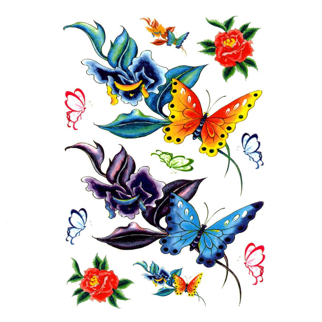 Siirtotatuointi perhonen ja kukkia 11kpl arkki