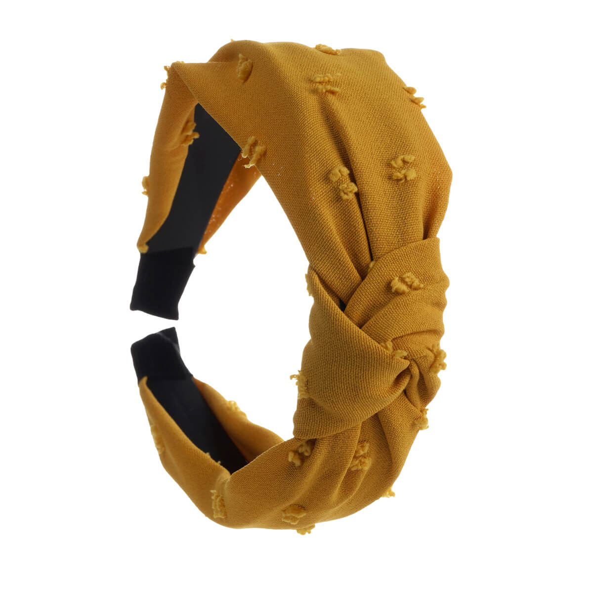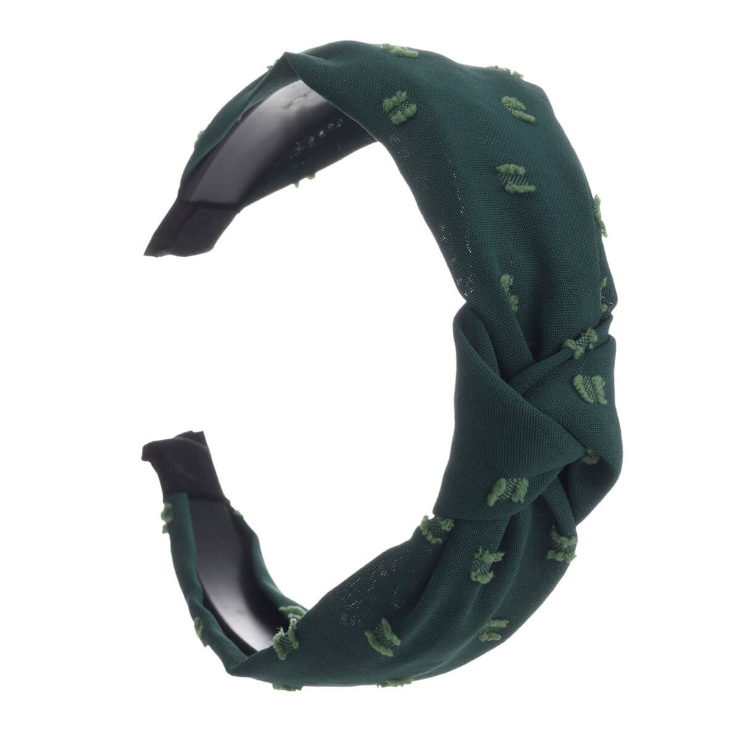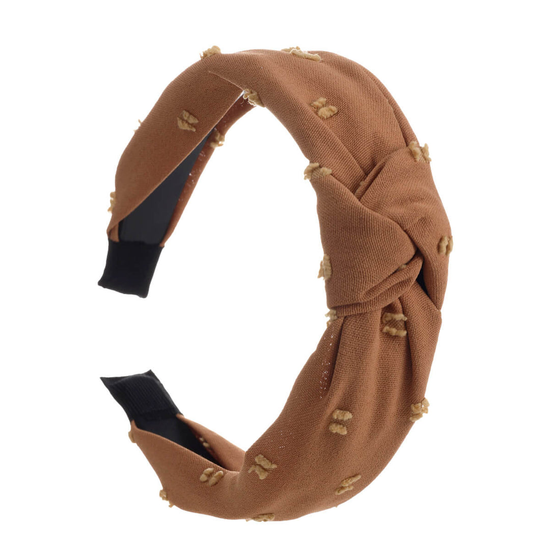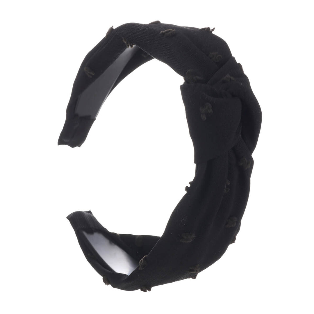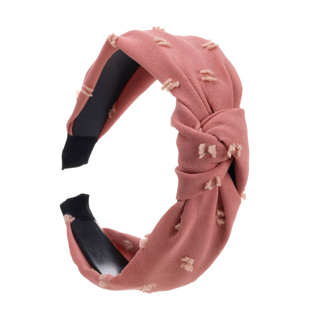 Mattainen kangas ei turhia kiiltele hiuspannan päällä. Kankaassa on hauskasti tehty nyppymäiset pilkut.