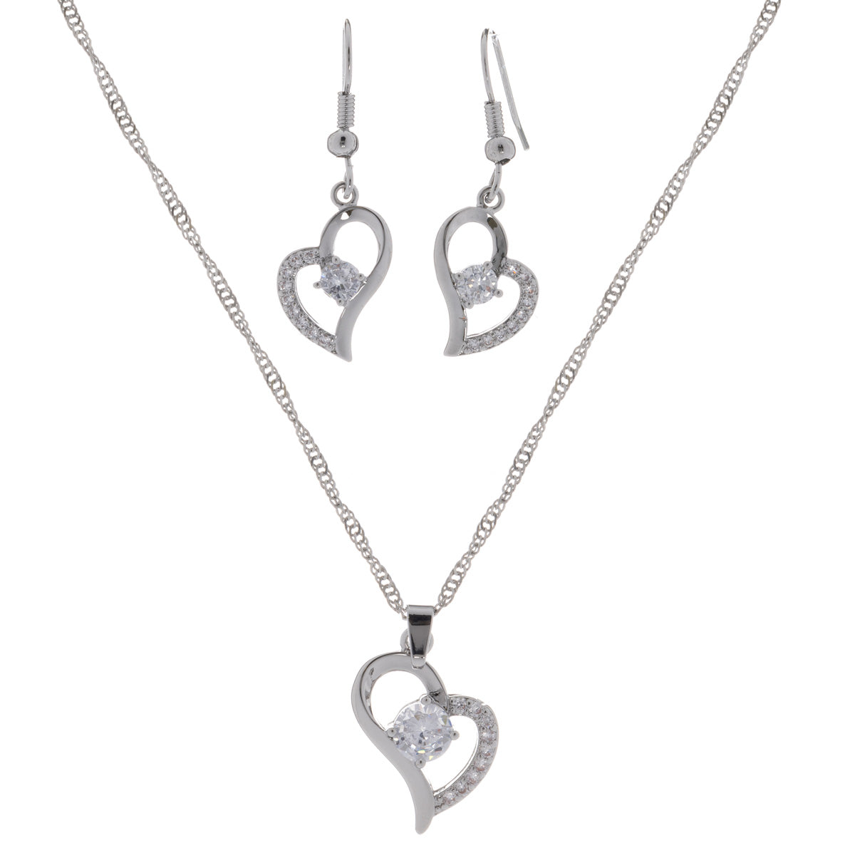 Kimaltavat sydämet kaulakorussa ja korvakorussa on kaunis lahjaidea naiselle. Kimaltavat zirkonia kivet säkenöivät kauniisti!