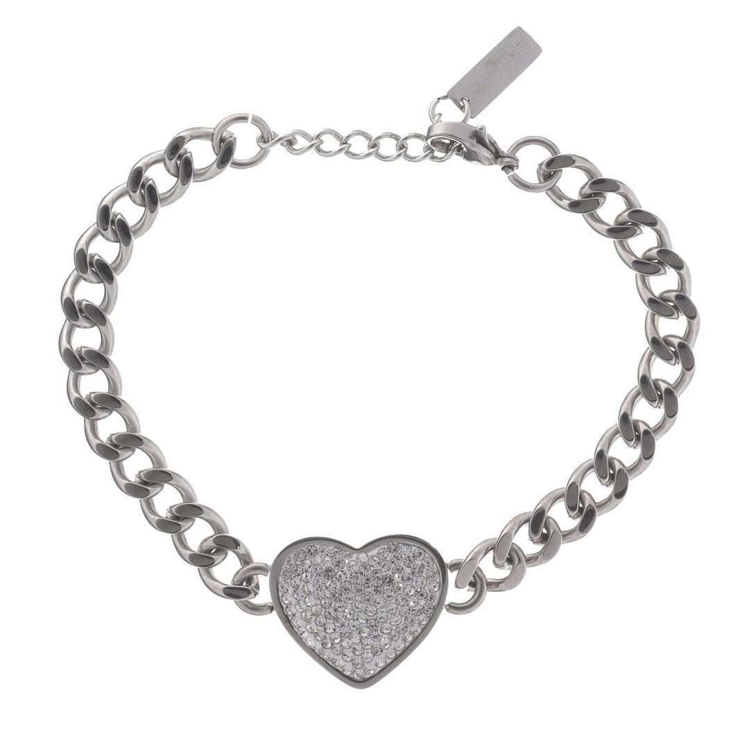 Kokonaan teräksinen naisten rannekoru on vahva ja se kestää käyttöä. Kimalteleva sydän rannekorun keskellä sopii mainiosti vahvaan panssariketjuun.