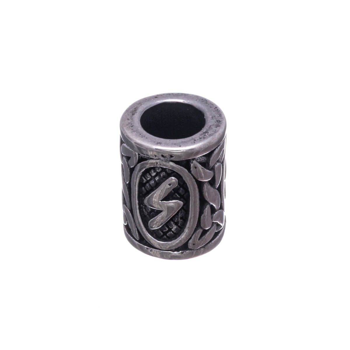 Tämän partakorun keskiössä on pitkänomainen, virtaava riimusymboli, joka edustaa etenemistä, sopeutumista ja elämän jatkuvaa liikettä. Muoto viittaa siihen, että voima ei synny pysähtymisestä vaan kyvystä kulkea eteenpäin olosuhteista huolimatta. Riimua ympäröivä punottu ornamentiikka sitoo liikkeen perinteeseen ja esi-isien viisauteen – jokainen askel on osa pidempää ketjua. Hienovarainen kullanvärinen yksityiskohta korostaa suuntaa ja päämäärää: tietoista valintaa kulkea omaa polkua.