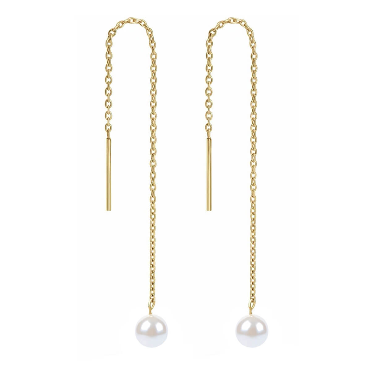Teräksiset ketju korvakorut helmellä (Teräs 316L)