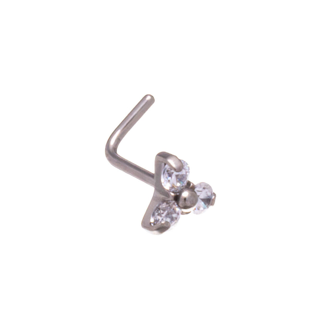Titaaninen 3 kivinen zirkonia nenäkoru L muoto 0.8mm (Titaani G23)
