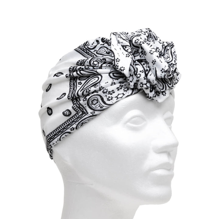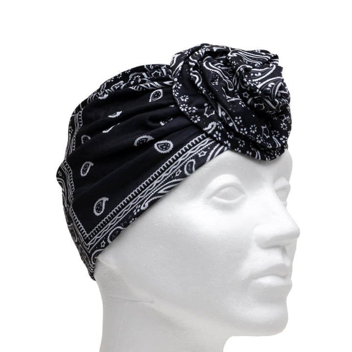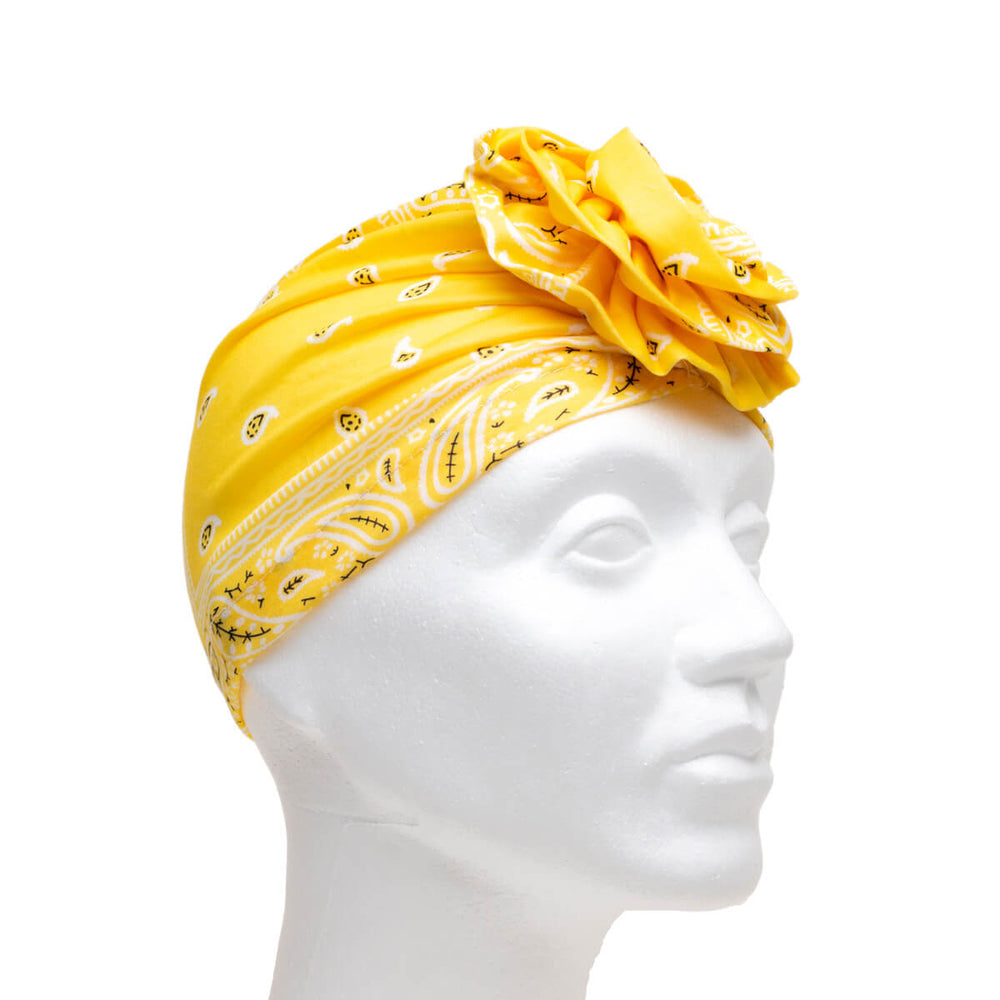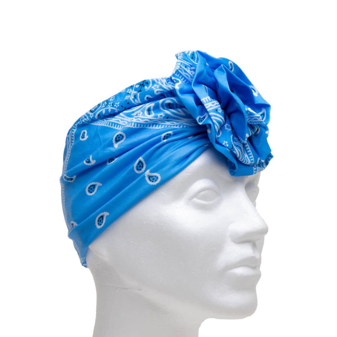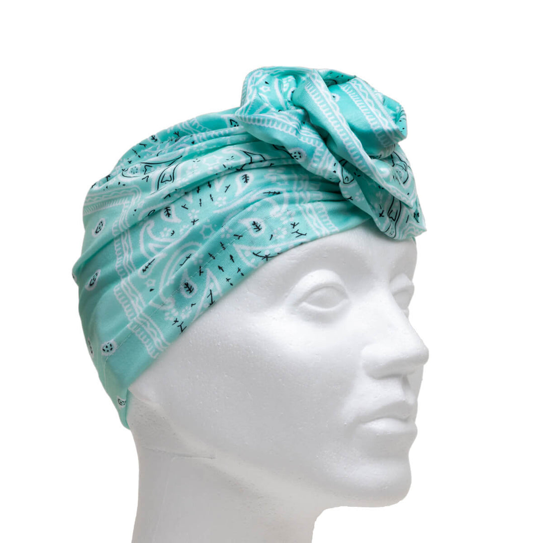 Elastinen turbaani on hellepäivien ystävä ja täydellinen suoja päälle. Elastinen ohut kangas on miellyttävä pitää.