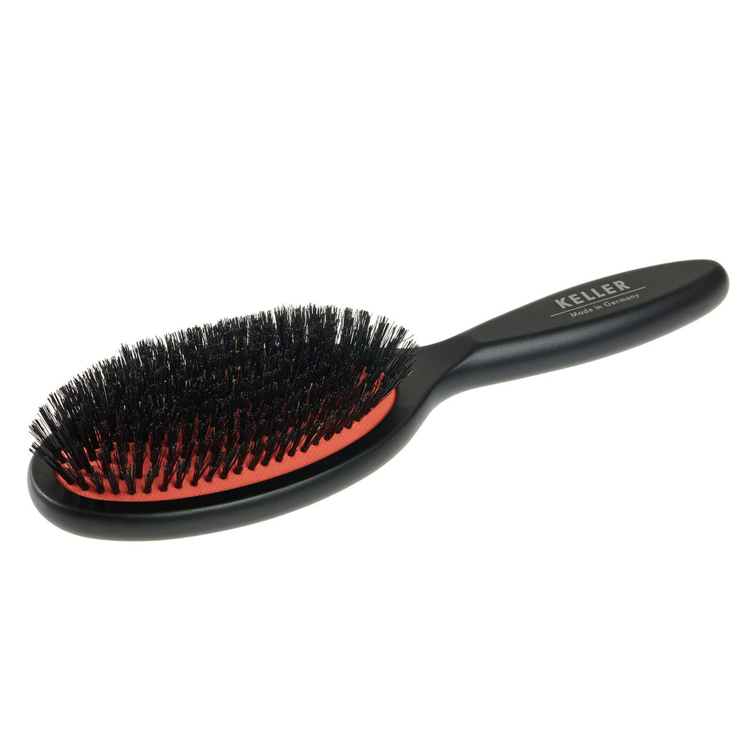 Pyökistä valmistettu tyynyllinen hiusharja villisianharjaksella on tyylikäs kokonaisuus. Punainen kumityynyllinen pohja antaa harjauksessa joustoa harjakselle.
