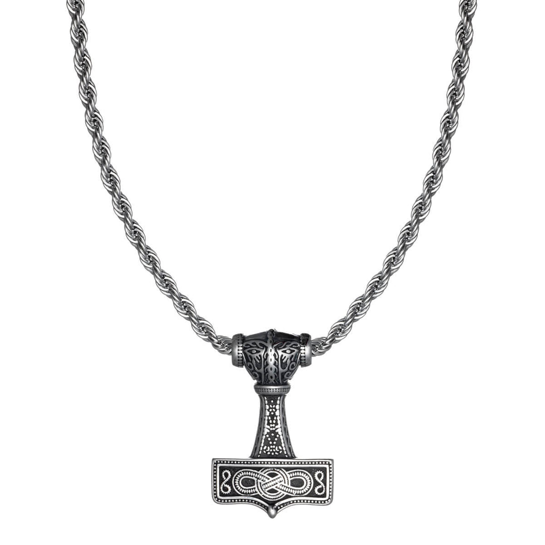 Muinaisaikainen viikinki henkinen kaulakoru on massiivisen tyylikäs. Thorin vasara riippuu vahvassa teräsketjussa.