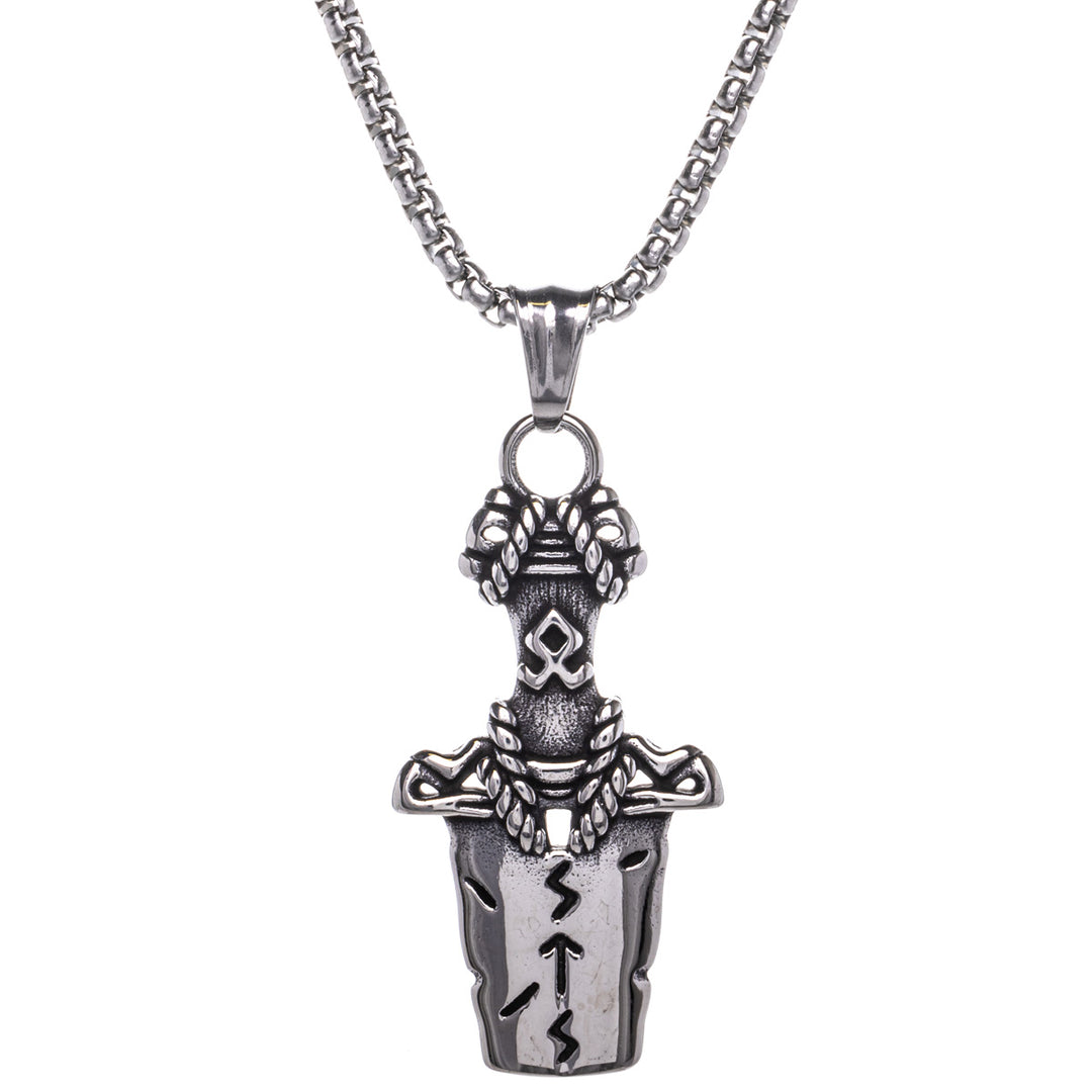 Innoittamana pohjoismaisesta mytologiasta ja viikinkien taistelukirveiden mahtavasta symboliikasta, tämä hopeanvärinen kaulakoru on valmistettu huomiota herättäväksi statement-koruksi. Terän kaiverrukset ja kahvan kultaiset yksityiskohdat luovat kontrastin, joka tuo esiin viikinkikoristelun monimutkaisuuden ja kauneuden. Riipuksen voimakas muotoilu viestii suojelevasta voimasta ja on muistutus muinaisista perinteistä. Se sopii täydellisesti niille, jotka haluavat kantaa mukanaan viikinkisotureiden rohkeutta ja suojelun henkeä.