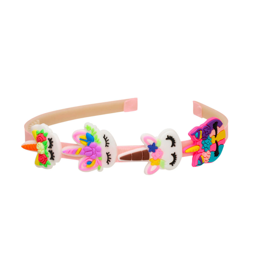 Yksisarvisilla koristeltu hiuspanta lapselle on varma suosikki. Hempeät hahmot ihastuttavat aina.