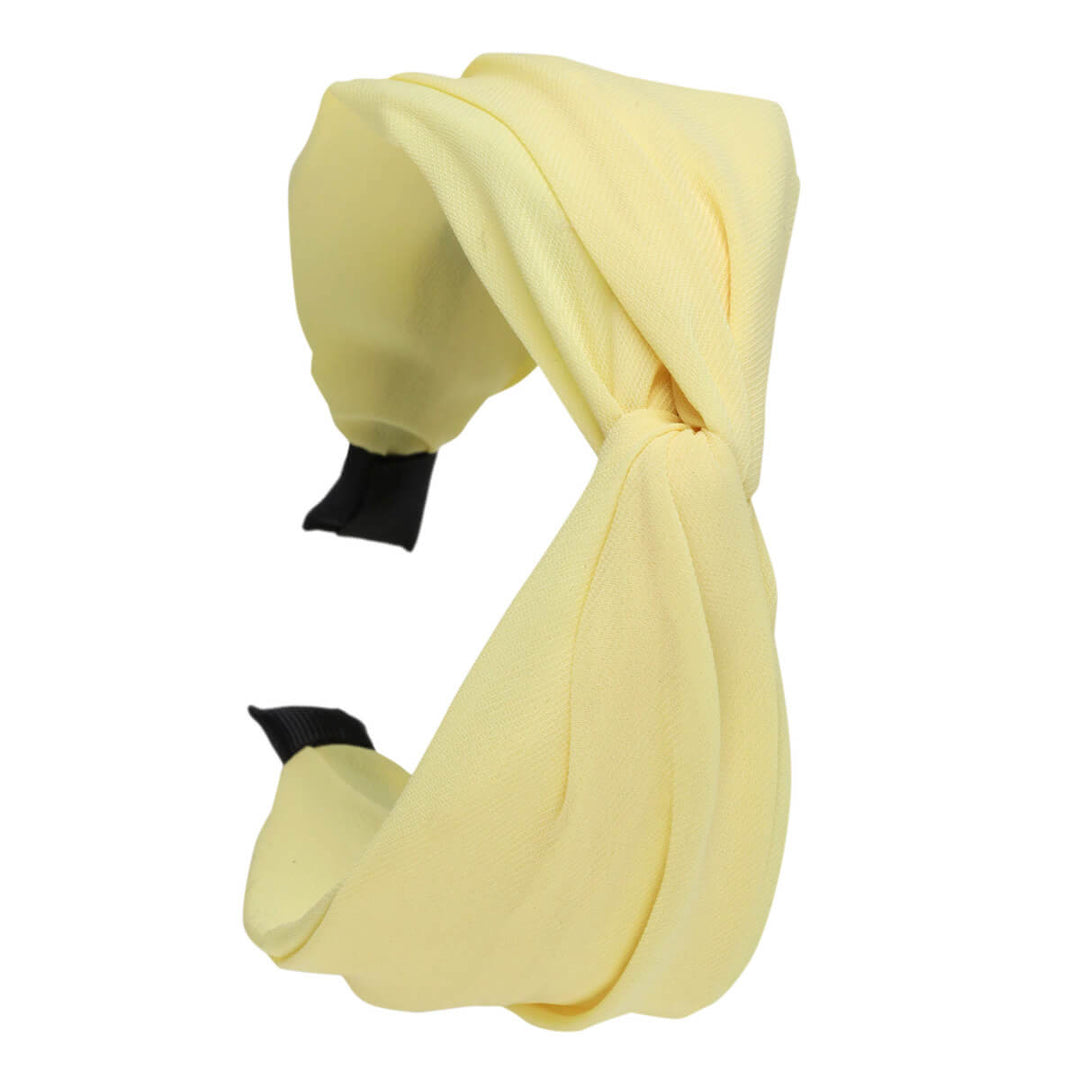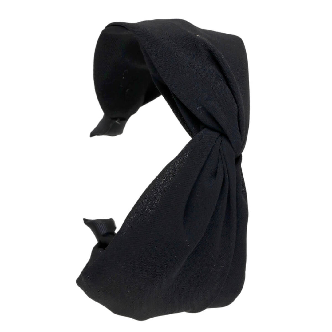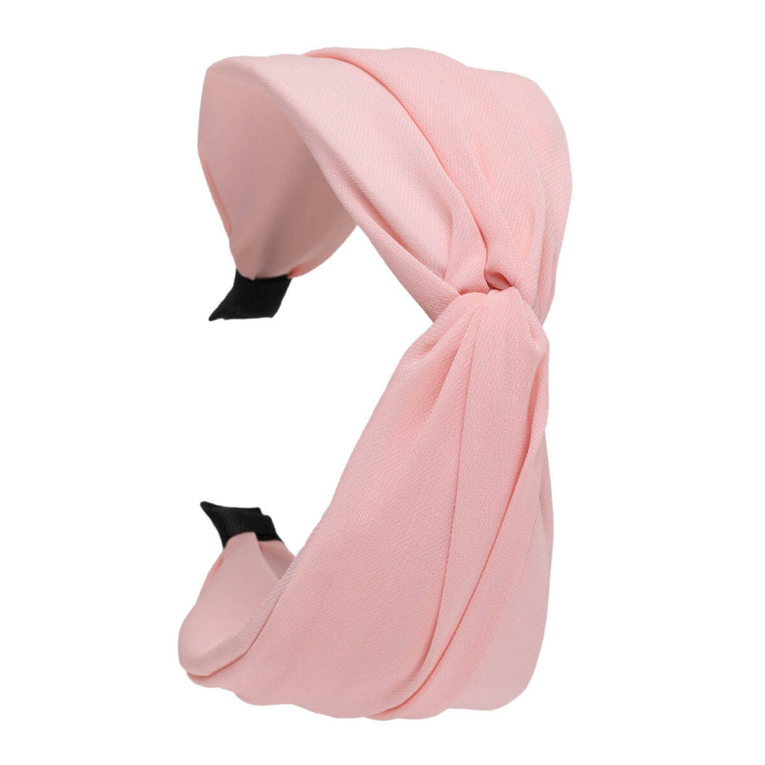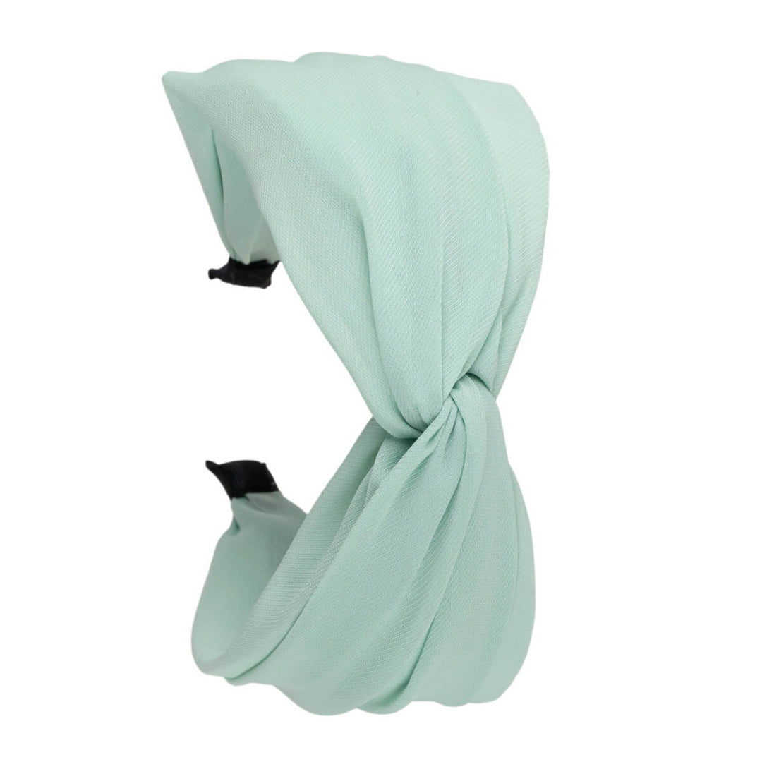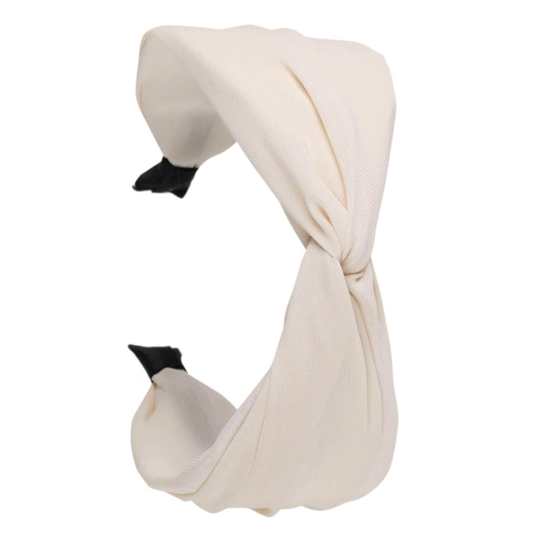 Yksivärinen mattapintainen kangas on mahtava hiusten ystävä. Kankaan hillitty pinta on tyylikäs. Keskellä pantaa kangas tekee twistin.