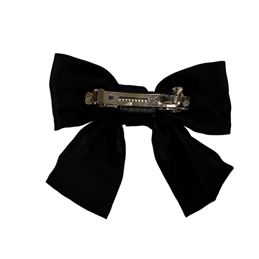 Reilu kokoinen rusetti koristaa tätä hiussolkea. Soljen saa helposti hiuksiin kiinni.