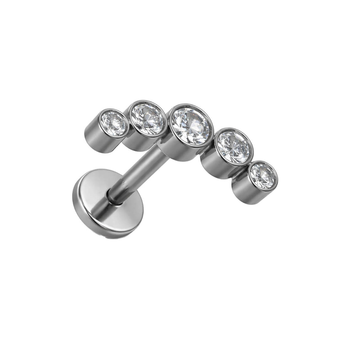 Tre zirkonia sten triangelarmband med titan labret 1,2mm (Titan G23)