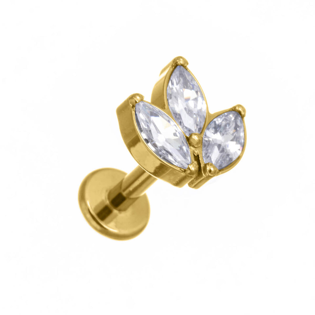 Armband med tre marquise-zirkoner i guldpläterad titan 1,2 mm (PVD-titan G23)