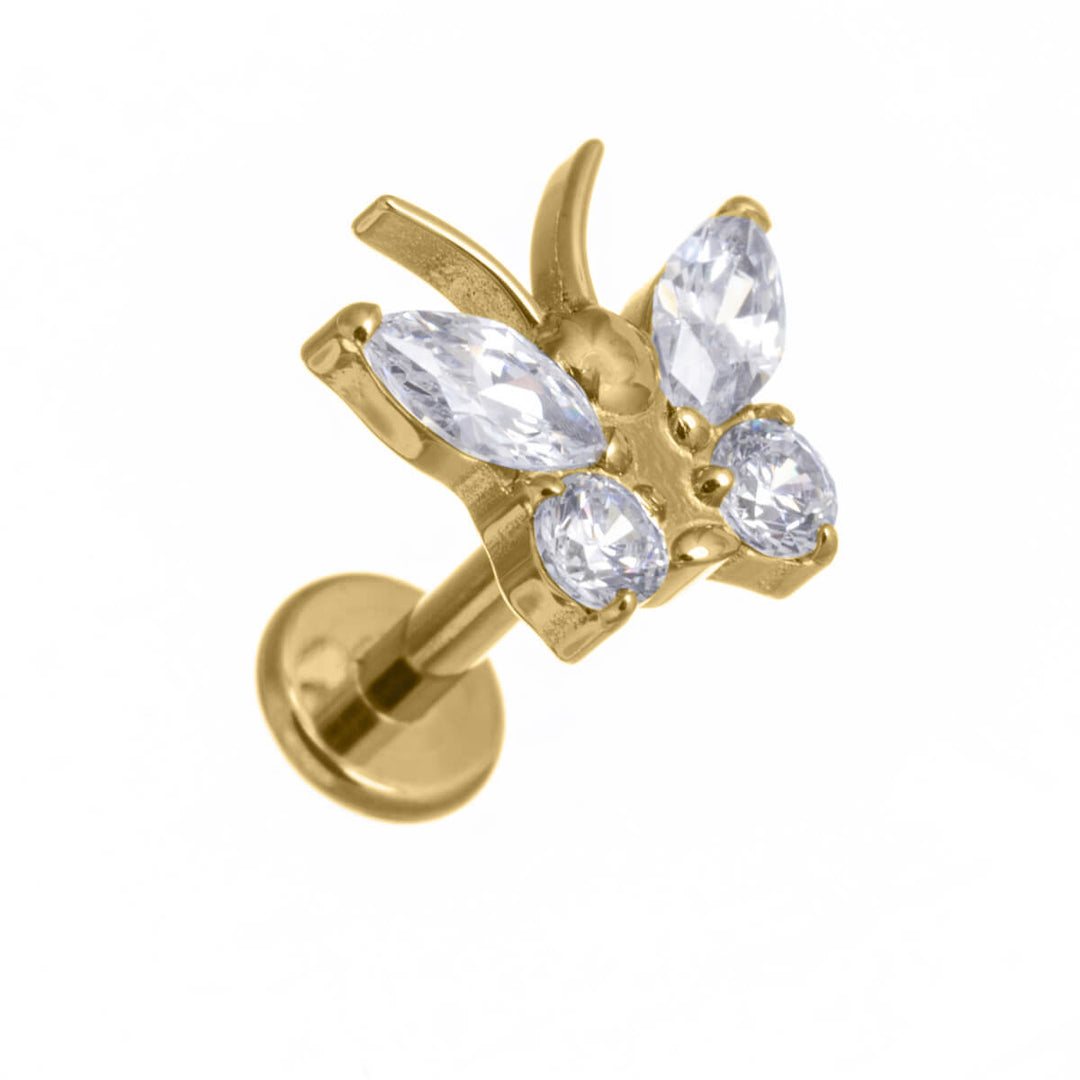 Hängande örhänge med zirkonia i form av en fjäril (316L-stål)