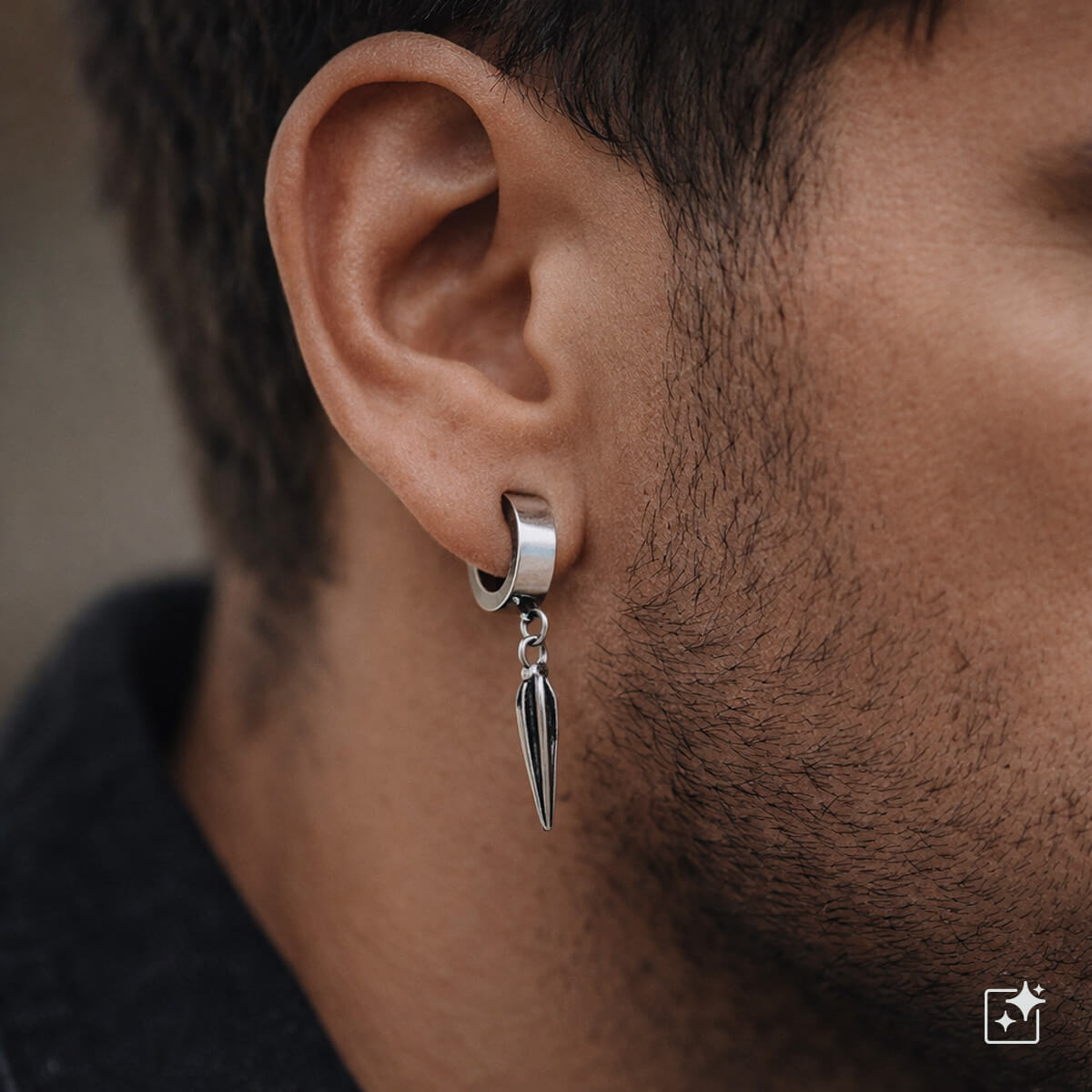 Minimalistiska men ändå iögonfallande örhängen med dinglande spikar som ger smycket ett skarpt och modernt utseende. De koniska spikarna rör sig lätt och ger örhängena en dynamisk känsla som passar alternativa stilar utan att vara överdrivet dekorativa.