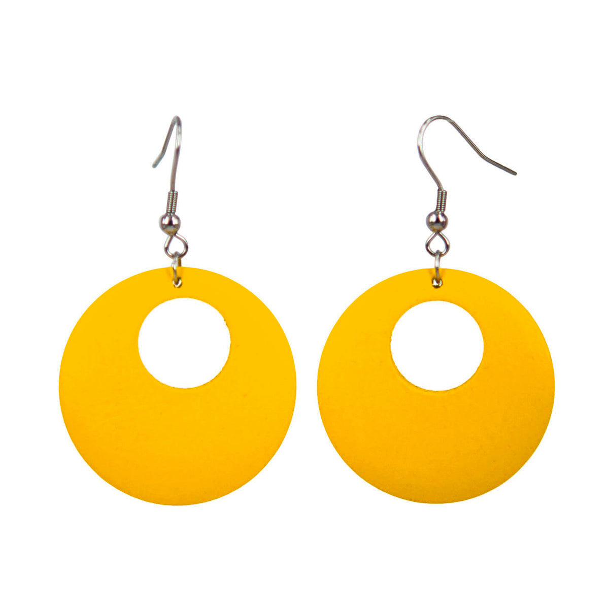 Runda örhängen i trä är en trevlig uppfräschning i vardagen. Materialet gör dem mycket lätta.