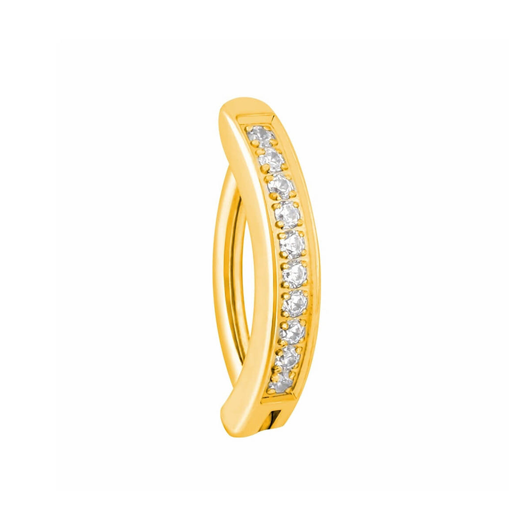 Ett utmärkt alternativ för en aktiv person. Den här modellen har ett gångjärn som öppnas lätt och snäpper tillbaka på plats. Den är helt tillverkad av titan. En rad zirkoner dekorerar smyckets båge.
