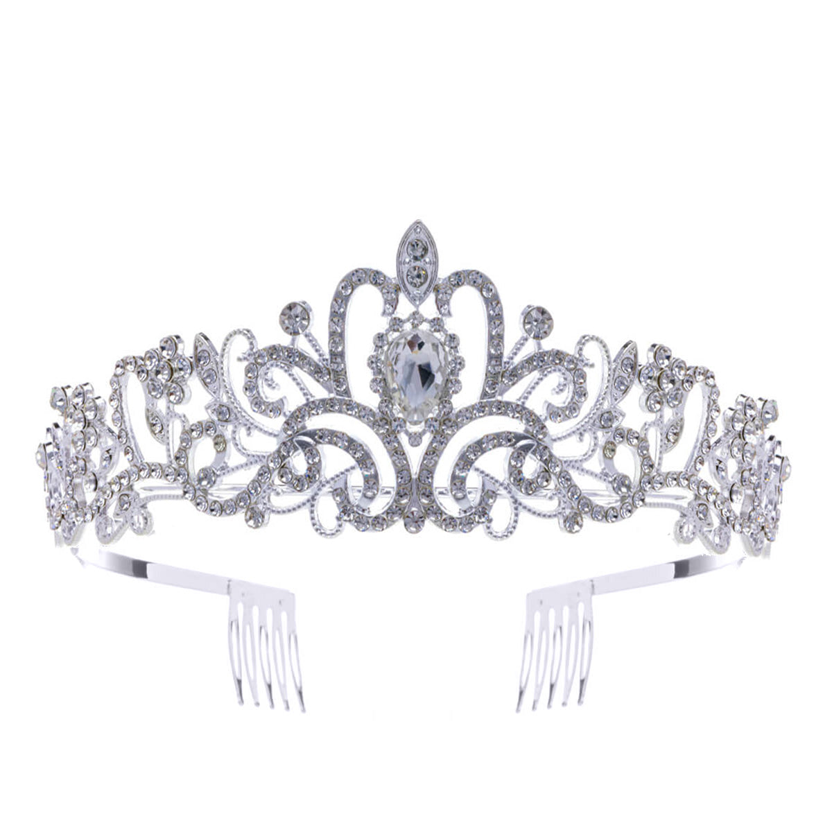 Klara glasstenar gnistrar vackert i detta kristallprydda festdiadem. Diademet är lätt att sätta i en frisyr. Den kamformade tiaran är bekväm att bära som en hårbandsstil eller lösare i en frisyr.