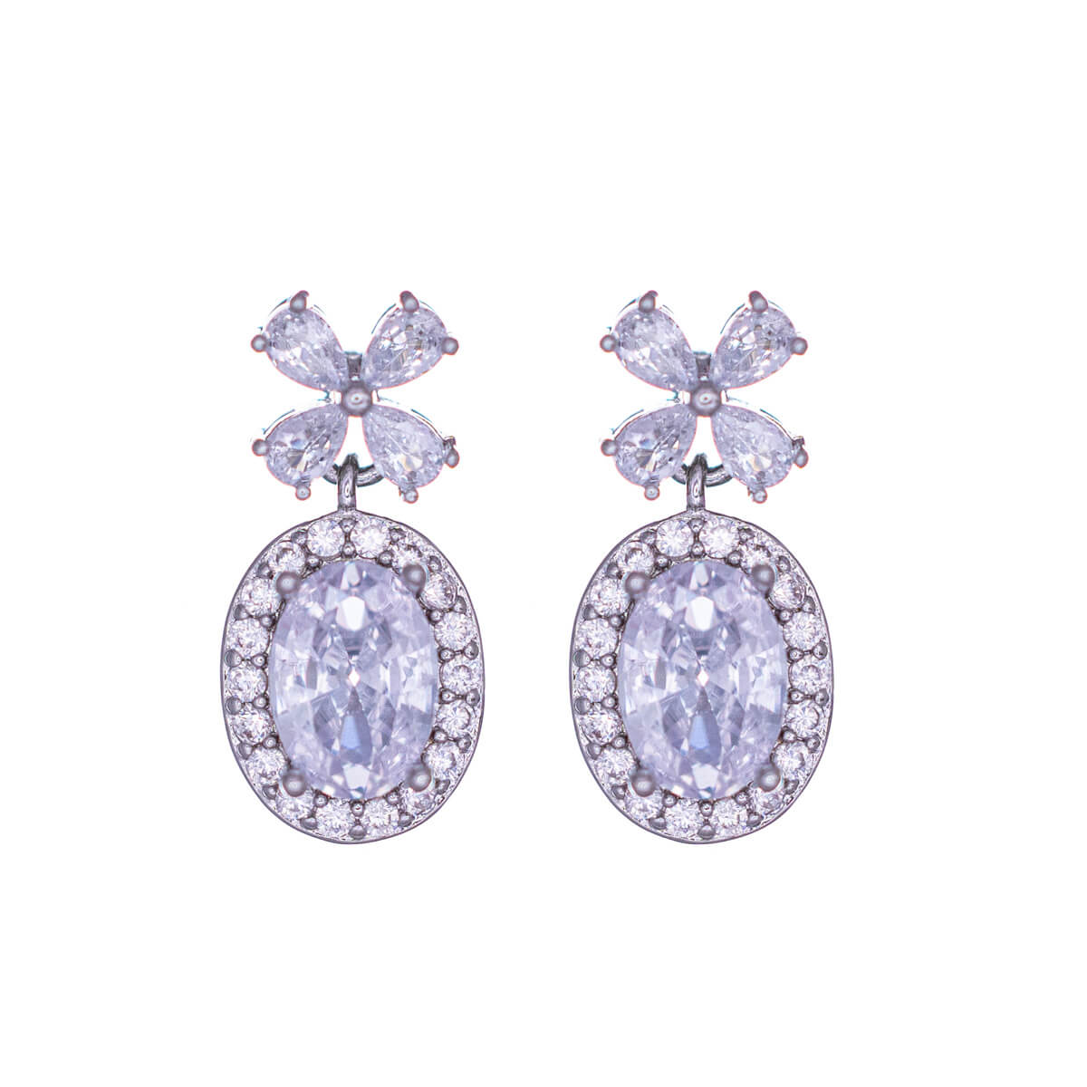 DELIKATA DRÅPFÖRMIGA ZIRKONIA-FESTÖRINGAR MED BLOMMA PÅ Toppen